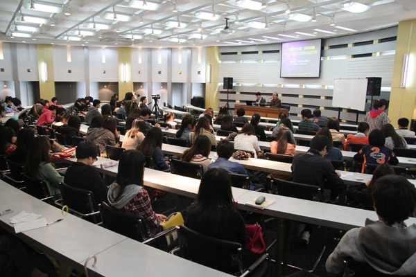 讲座在校图书馆二楼报告厅举行。熊元义教授从当下社会大众特别是大学生中常见的功利化的价值取向入手,通过剖析“赵本山”现象、“韩寒”现象,辨析“白毛女该不该嫁给黄世仁”的问题,以及分析《野山》、《赵氏孤儿》背后的价值取向等,对转型期中国社会存在的信仰缺失、道德失范等社会现象进行了深刻的批判和反思。