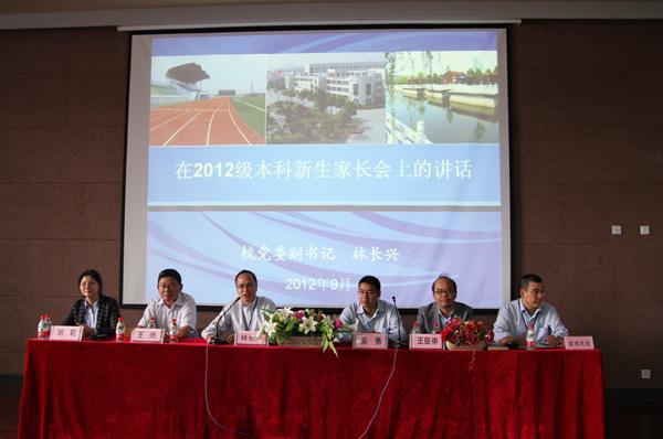 当天下午1:30召开的新生家长会,更是今年迎新工作的一大亮点。家长会上,校党委副书记林长兴在教学楼报告厅为到场的新生及家长详细介绍了我校的总体概况、办学历程、文化传统以及发展愿景等。之后,基础学院院长王勇对杭州湾校区的基本情况作了简要介绍。出席会议的领导、老师还与到场的家长进行了互动交流。家长们带着满意的笑容走出了报告厅,大家对学校的迎新工作赞不绝口。