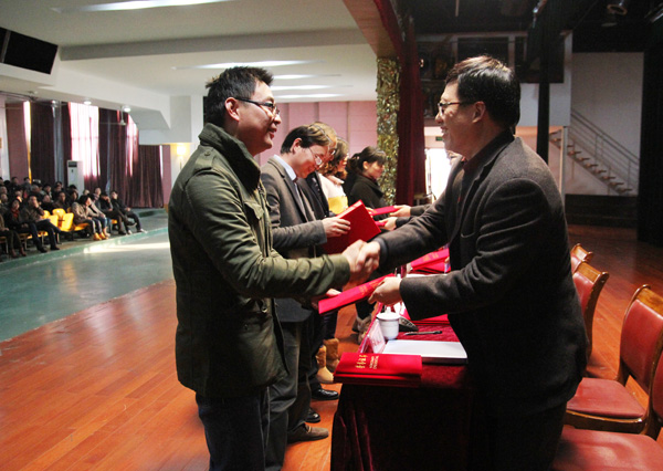 会议首先对2012年获得各种荣誉称号的优秀教师进行了表彰。校长助理高振强宣布了获得“2012年度星级教学优师”、“2012年度优秀毕业论文指导教师”、“2012年度优秀学生竞赛指导教师”等称号的优秀教师表彰名单,主席台领导为优秀教师颁发了获奖证书。