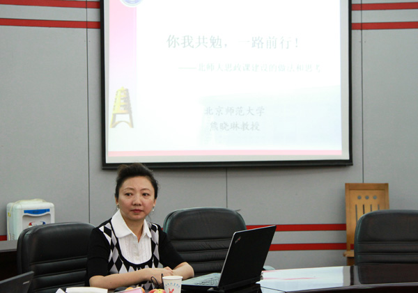 5月15日上午,我校思想政治课研讨会在二楼西会议室召开,本次会议特邀北京师范大学马克思主义学院(政治学与国际关系学院)副院长、博士生导师熊晓琳教授到场指导。副校长李羽,教务处、社科部负责人及相关教师参加了会议。