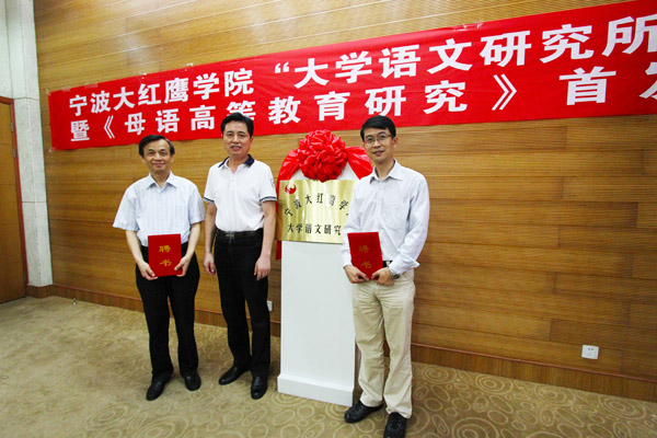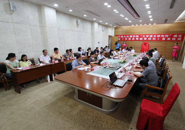 6月5日上午,我校“大学语文研究所”成立暨《母语高等教育研究》首发仪式在信息大楼105会议室举行。《光明日报》教育部主任汪大勇,《中国教育报》新闻编辑中心主编黄蔚,人民出版社魏国旺主任,军队院校大学语文教学协作联席会召集人、南京国际关系学院徐同林教授,浙江省大学语文研究会会长、浙大城市学院传媒与人文学院院长张梦新,宁波大学人文学院副院长宋闻兵等兄弟院校有关负责人,我校党委书记孙惠敏、副校长李羽等出席仪式,参加仪式的还有教务处、科研处、人文学院以及大学语文研究所有关负责人和老师。仪式由人文学院院长王臣申主持。