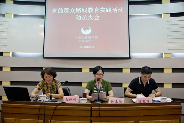 会上,校党委书记孙惠敏代表校党委作动员讲话。她在深入阐述开展党的群众路线教育实践活动的重大意义时强调,开展群众路线教育实践活动是巩固党的执政基础、办好人民满意教育的必然要求,也是推动我校全面发展的必然要求。学校经过了13年的跨越式发展,取得了令人瞩目的成绩。与此同时,学校也不同程度地存在着与师生期盼、学校发展建设不相适应的问题。为此,孙书记强调,要以此次教育实践活动为契机,以整风的精神对存在问题进行整改并逐一解决,扎扎实实地开展好党的群众路线教育实践活动。