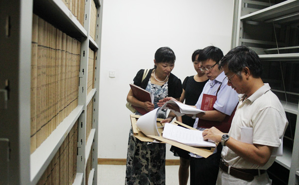 专家组抵校后,首先详细听取我校综合档案室建设情况介绍,随后赴档案室对工作场所、设施设备、馆藏情况等进行实地考察,并对实体档案、档案利用等情况进行了深入细致的分项检查。