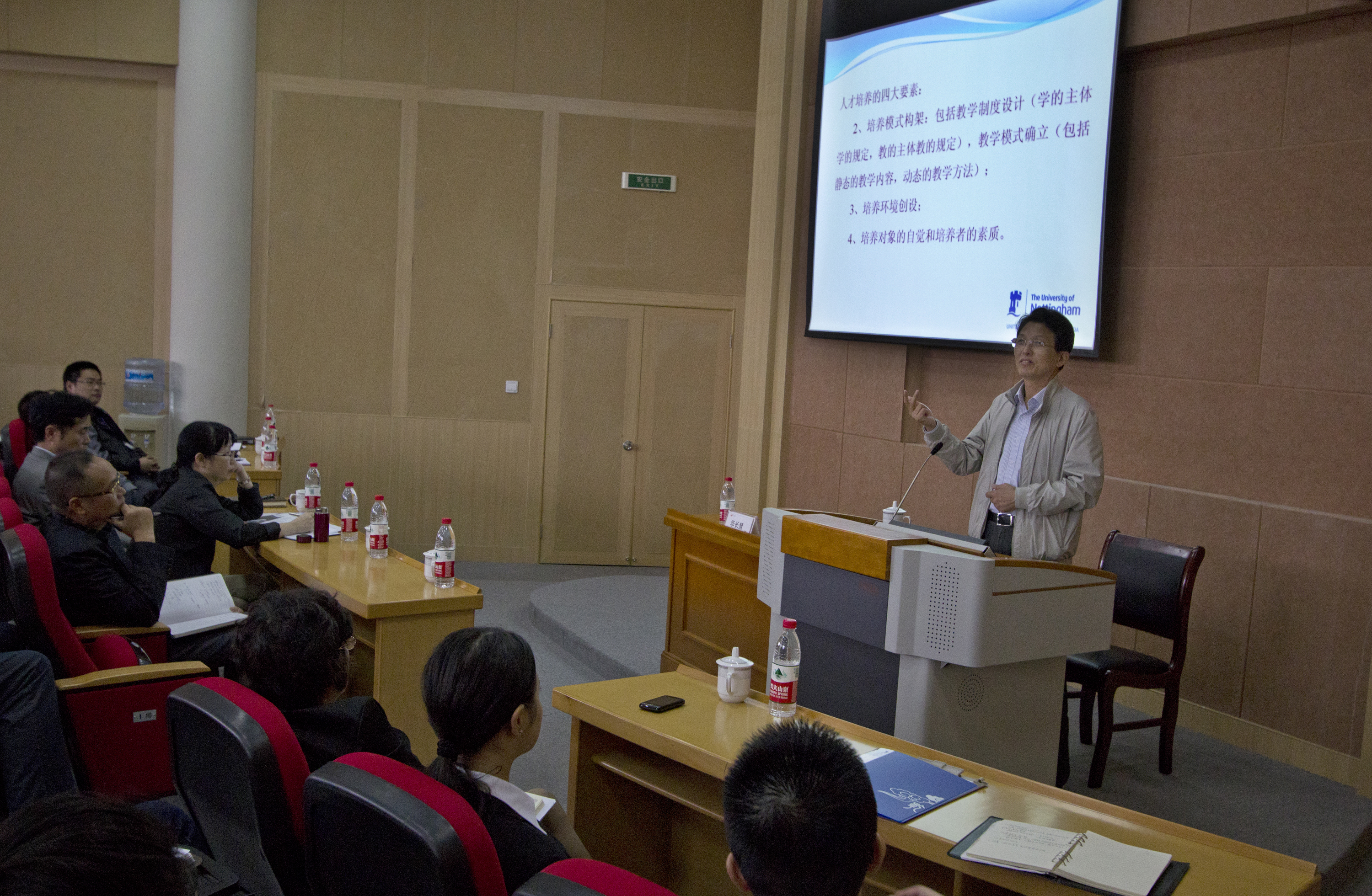 接着,他结合宁波诺丁汉大学这所中外合作大学的实践,对人才培养的四大要素(即培养目标设计、培养模式构架、培养环境创设、培养对象的自觉和培养者的素质)进行了详尽而生动的阐述。其一,在价值取向问题上,华教授认为,中外合作大学应是中外高等教育之间的优势互补,更应是双方在合作中提升自我、辐射本国高等教育的一个过程。为此,他提出,其办学应坚持优质性、开放性、互补性、辐射性、规范性原则,这是支撑中外合作大学人才培养的基础。其二,在治理架构上,他详细介绍了宁波诺丁汉大学“三个层面、两个系统”的治理结构,为深入探索中外合作大学治理架构提供了实践经验。其三,关于教学制度和教学模式,他提出,应把握好先进性、创新性、服务性三大导向,同时还需综合考虑教材提供、教师构成、教学方式、教学语言、考试制度、教学评价等教学要素。宁波诺丁汉大学的教学模式在该校的人才培养中发挥了至关重要的作用。最后,他结合具体事例介绍了宁波诺丁汉大学的德育模式,并对高校德育模式的构建提出了自己独特创新的观点。