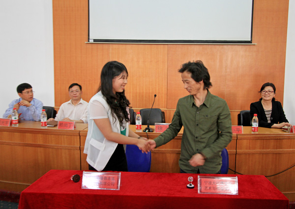 5月15日下午, 2007届毕业生徐洁满怀对母校的感激之情,携10万元设备、10万元奖学金回到母校,在行政楼报告厅与艺术传媒学院签订合作协议,共建设计表达工作室,共同培养建筑、家装、工装等行业的专业设计人才。