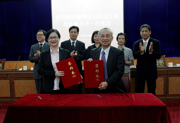 孙惠敏理事长(左)与苏炎坤校长(右)签署两校“合作举办视觉传达设计专业本科教育项目实施协议”