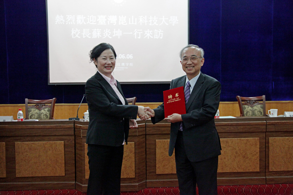 6月6日上午,我校与台湾昆山科技大学合作办学项目启动仪式在图书馆六楼报告厅举行,这意味着两校合作办学项目正式启动。台湾昆山科技大学校长苏炎坤教授、我校理事长兼党委书记孙惠敏教授出席仪式并致辞。启动仪式由校长助理高振强主持。