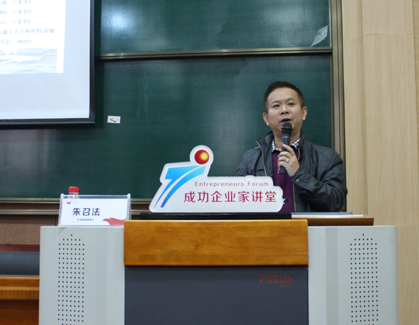 朱召法先生以自己人生的经历为切入点,讲述了他留学、下海创办蓝帆科技的人生经历,描述了创业多年来所经历的跌宕起伏。谈及他的二次创业经历,他说,由于缺乏市场经验,缺乏一定的市场分析能力,最后导致了第一次创业的失败。在第二次创业时,凭借顽强的毅力和第一次创业积累下的宝贵经验,历经挫折终于取得了成功,先后创建了东海蓝帆、东蓝数码、东蓝运营等公司,成立了目前的东蓝集团。朱召法先生用自己的发展经历告诉广大同学,百年的人生也只不过是一舍一得的重复;告诫大家在今后的发展和工作中要学会“舍”、“得”,“懂得了舍得的道理,学会了如何去舍得,这将是大家一生受益的财富。”