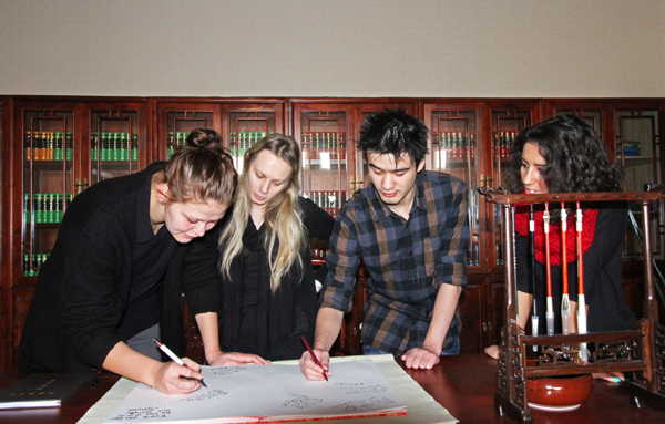 在4天时间里,学校为该留学生团开设了短期课程、召开了座谈会以及开展了企业实地考察等形式多样的学习项目。在课程安排上,开设了包括中国传统文化、茶艺、太极、书法等在内的极具中国特色的课程,让丹麦学生对中国文化瑰宝有了进一步了解。在座谈会上,我校同学与留学生团就对方学习、生活等双方感兴趣的话题进行了深入交流和探讨,使我校学生对丹麦文化有了更好的了解。此外,留学生团还实地考察了宁波的物流企业——宁波龙星物流有限公司,参观考察了该公司位于北仑港的总部,并与企业相关负责人进行了座谈,全面了解了该公司基本情况,使留学生们对宁波物流行业的现状和发展有了更加深刻的认识。