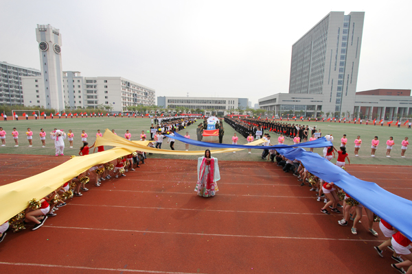 开幕式在激昂奋进的《运动员进行曲》中拉开帷幕。在全场观众的欢呼声中,国旗、院旗、会徽方队,彩旗、鲜花方队,裁判员、志愿者方队和各学工组运动员代表队迈着矫健整齐的步伐,依次通过主席台接受检阅,独具特色的队形变换和造型展示,赢得在场观众的热烈掌声。由800名女生演绎的大型团体操表演大气磅礴,将现场气氛推向高潮。