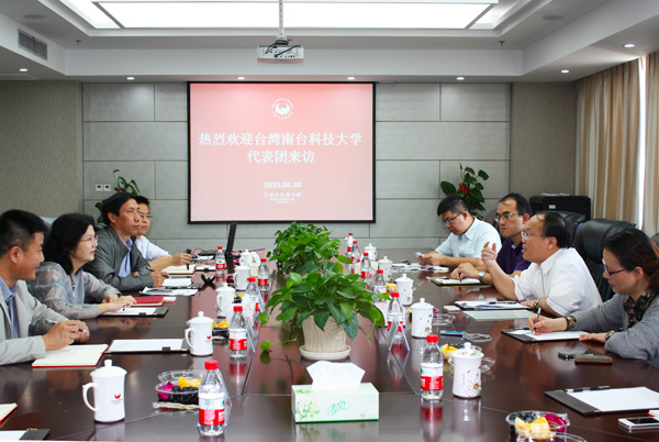 4月30日上午,台湾南台科技大学教务长赖明材教授一行访问我校,校长助理高振强在信息楼9楼会议室热情接待了来宾,就两校进一步合作事宜进行了深入会谈。经管学院、外事处负责人及相关老师等参加了会谈。