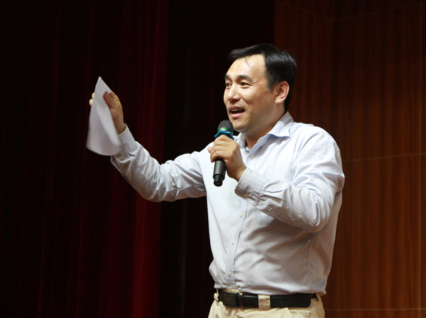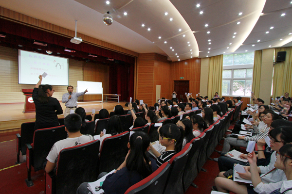 下午,在题为“认识自我 心理减压”的讲座中,刘爱民进行了一系列心理游戏活动,与现场同学们展开互动交流。他凭借丰富的心理学经验,运用幽默风趣的语言带领同学们更深层次地认识自己;谈笑间为同学们做心理减压。